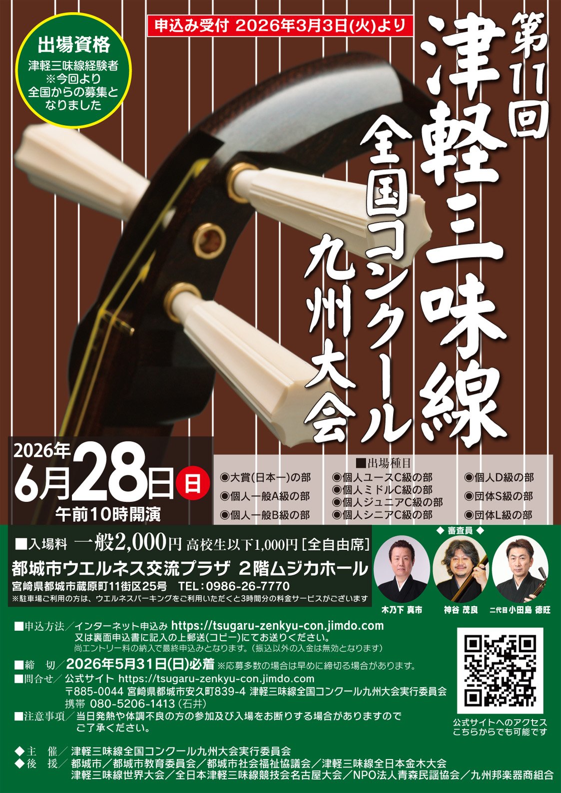 【2026年6月】第11回津軽三味線全国コンクール九州大会 |