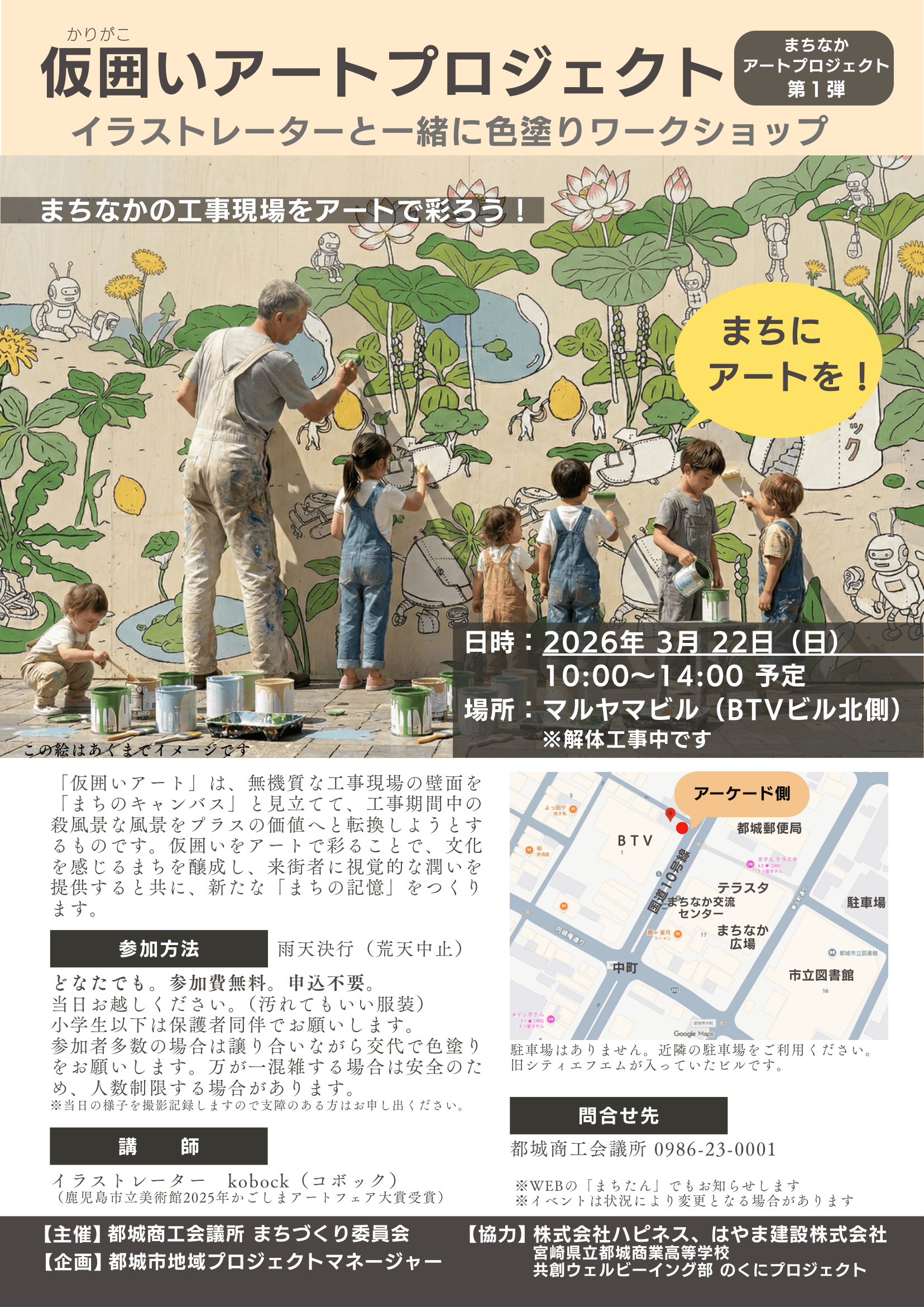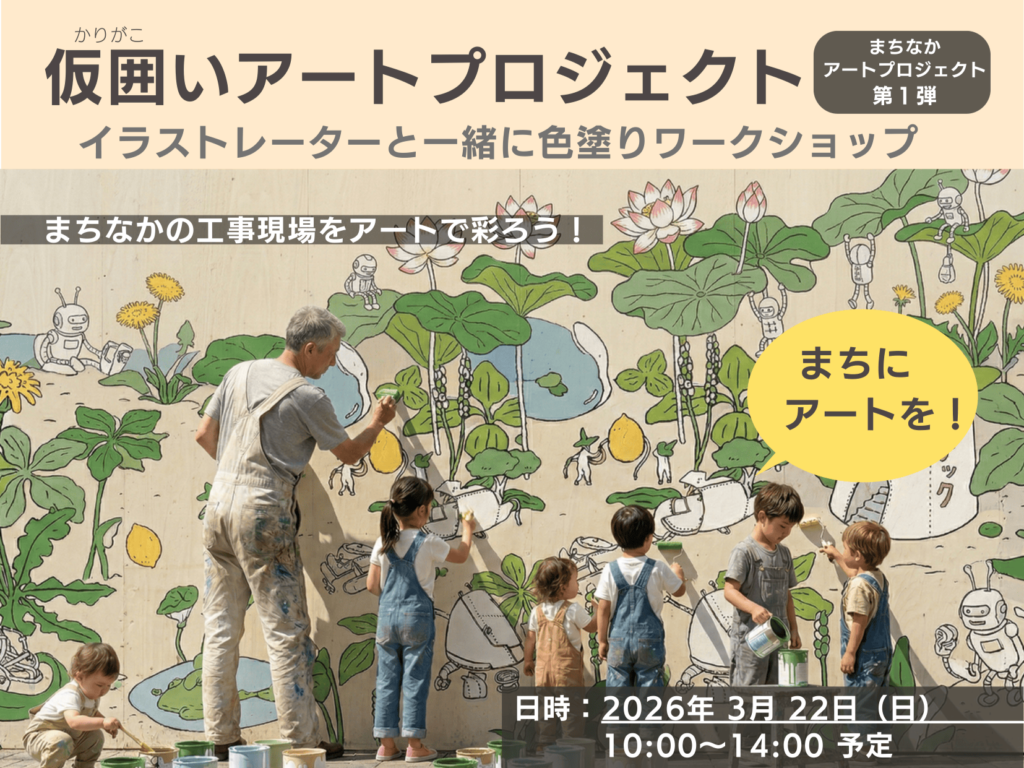 まちなかアートプロジェクト第1弾 【2026年3月】仮囲いアートプロジェクト イラストレーターと一緒に色塗りワークショップ |