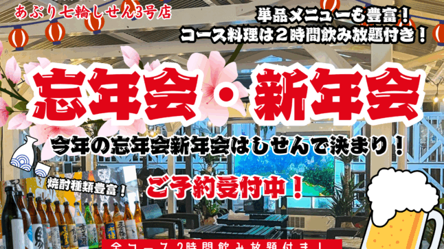 【2025年】忘年会・新年会 あぶり七輪しせん3号店(テルテル)