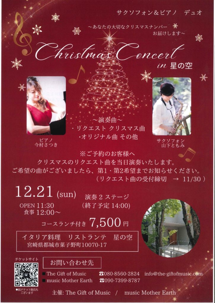 ~あなたの大切なクリスマスナンバーお届けします~ 【2025年12月】サクソフォン&ピアノデュオ Christmas Concert in 星の空 |