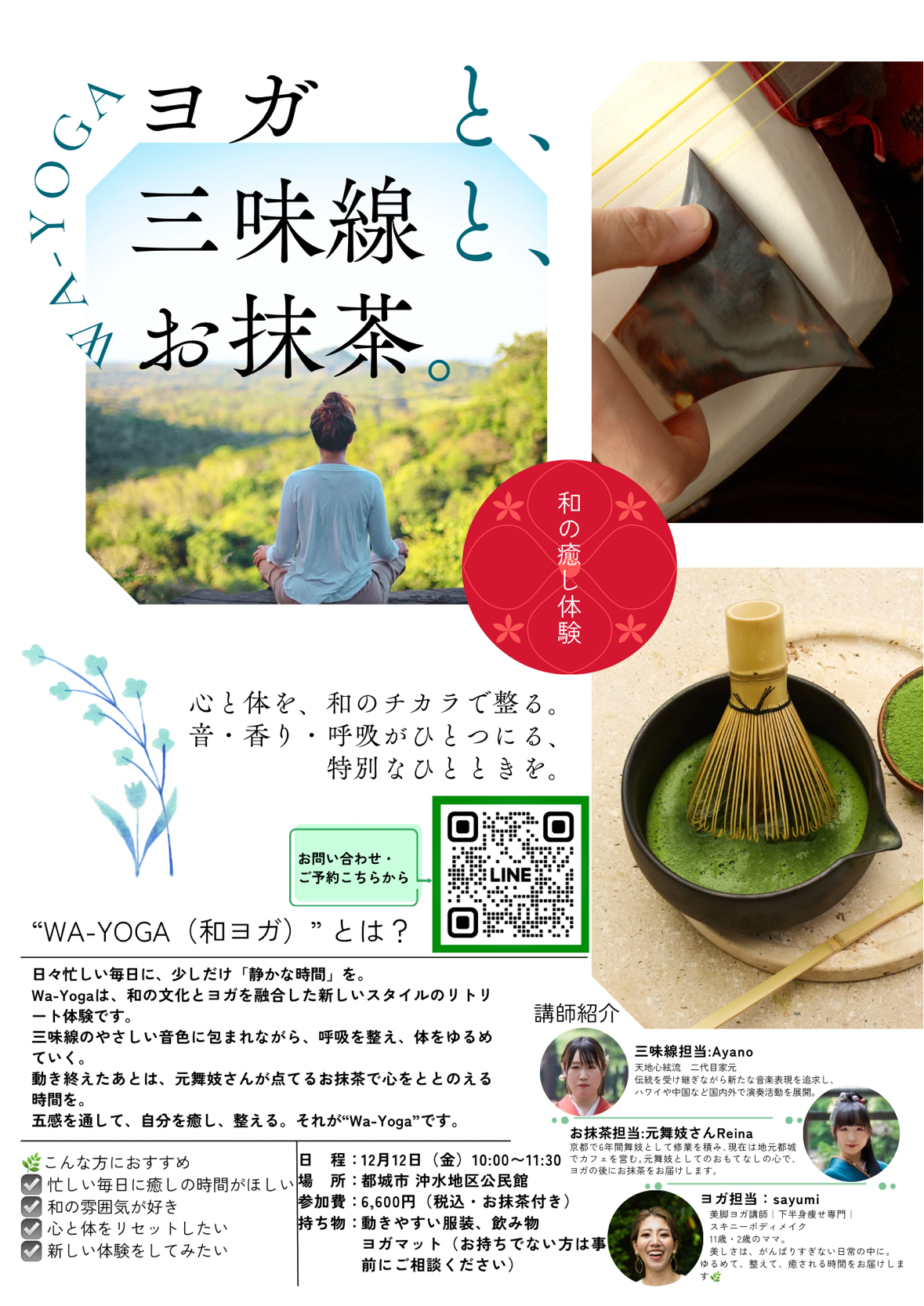 ヨガと、三味線と、お抹茶。 【2025年12月】WA-YOGA~和ヨガ~ |