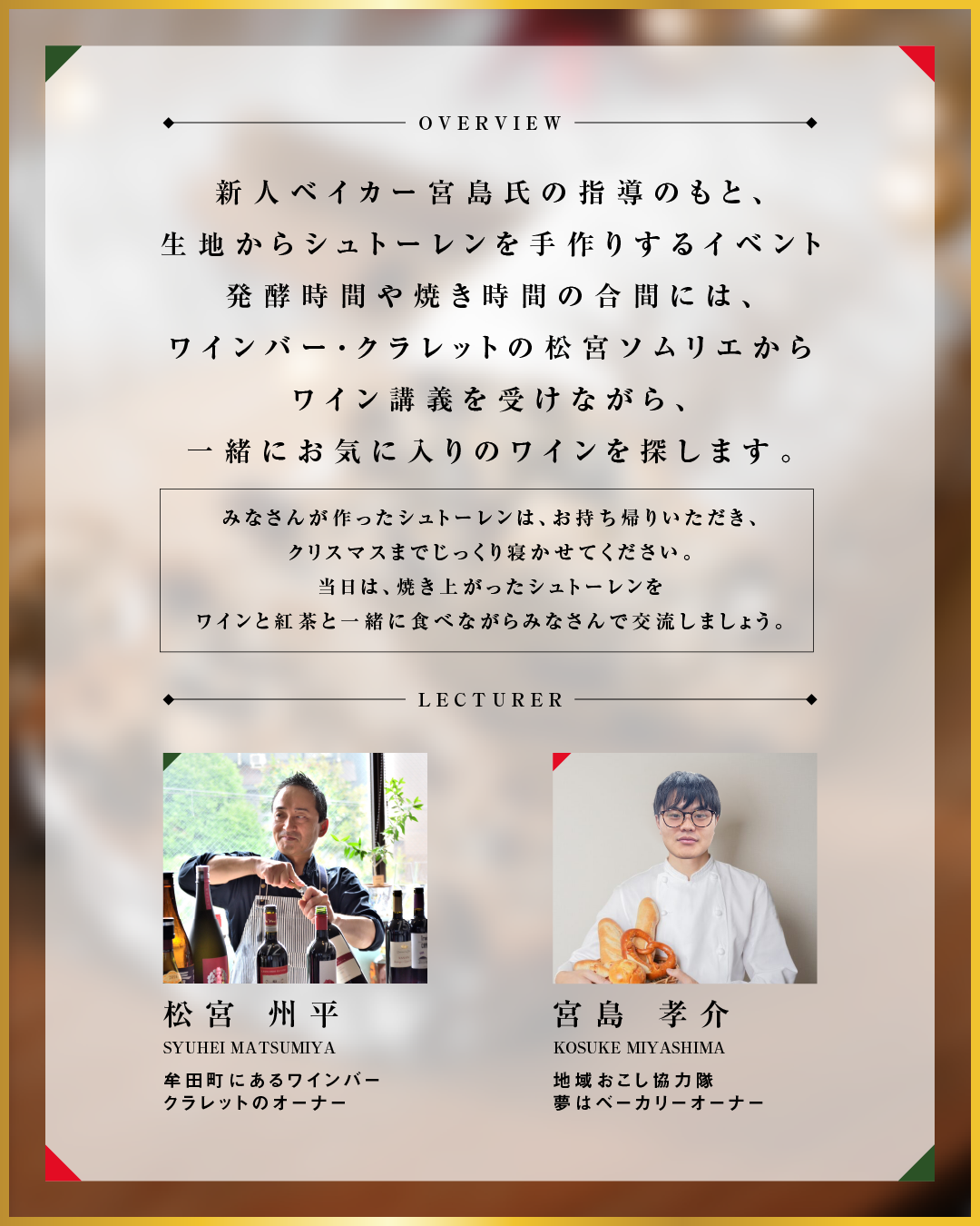 ワインの豆知識やシュトーレンに合う一杯を楽しみます。