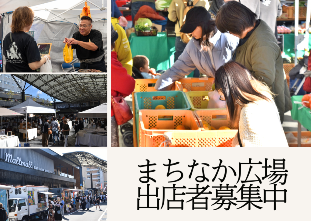 【2026年度】まちなか広場出店者募集 投稿日:2026.2.26 ■申込方法について ●下記一覧が、現在申し込み受付中のイベントになります。 ●申込みは、各ページからご登録が必要です。 ●イベントごとに、出店料や要項が異なりますので、必ずご確認ください。 ●出店にあたって、事務局側で事前に選考いたします。 選考にあたり、出店をお断りする場合もありますので、予めご了承ください。 申し込み受付中のイベント