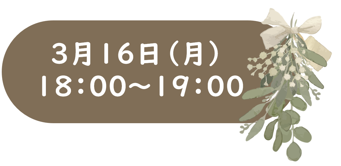 2026年3月16日(月) ①16:00~17:00 ②18:00~19:00 |