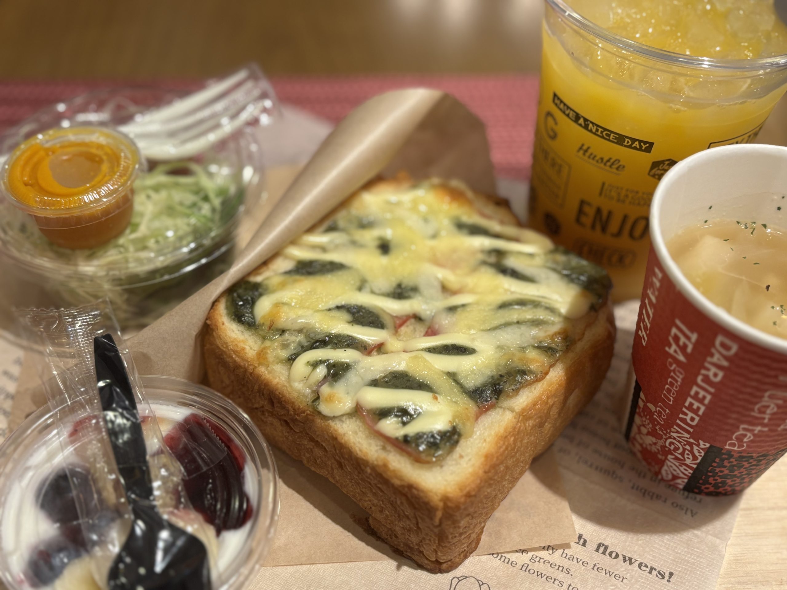 商品:コーヒー、アーモンドクロワッサン、焼き菓子など