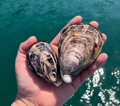 日南市南郷町で女性ひとりでカキの養殖をしています。女性できる水産業の実現を目指して日々奮闘中です。潮通しがよく透明度が高い南郷の海で育ったひとしおオイスターは、クリーンな味わいと優しい甘さが特徴です。朝市では殻付き生牡蠣の販売はもちろん、その場でも味わっていただけるように「牡蠣の白ワイン蒸し」も販売します。