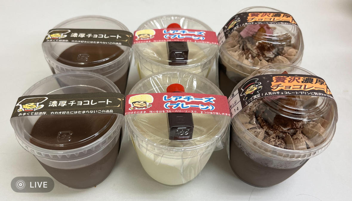 商品:ケーキバー6種類 ロールケーキ2種類 プリン2種類など