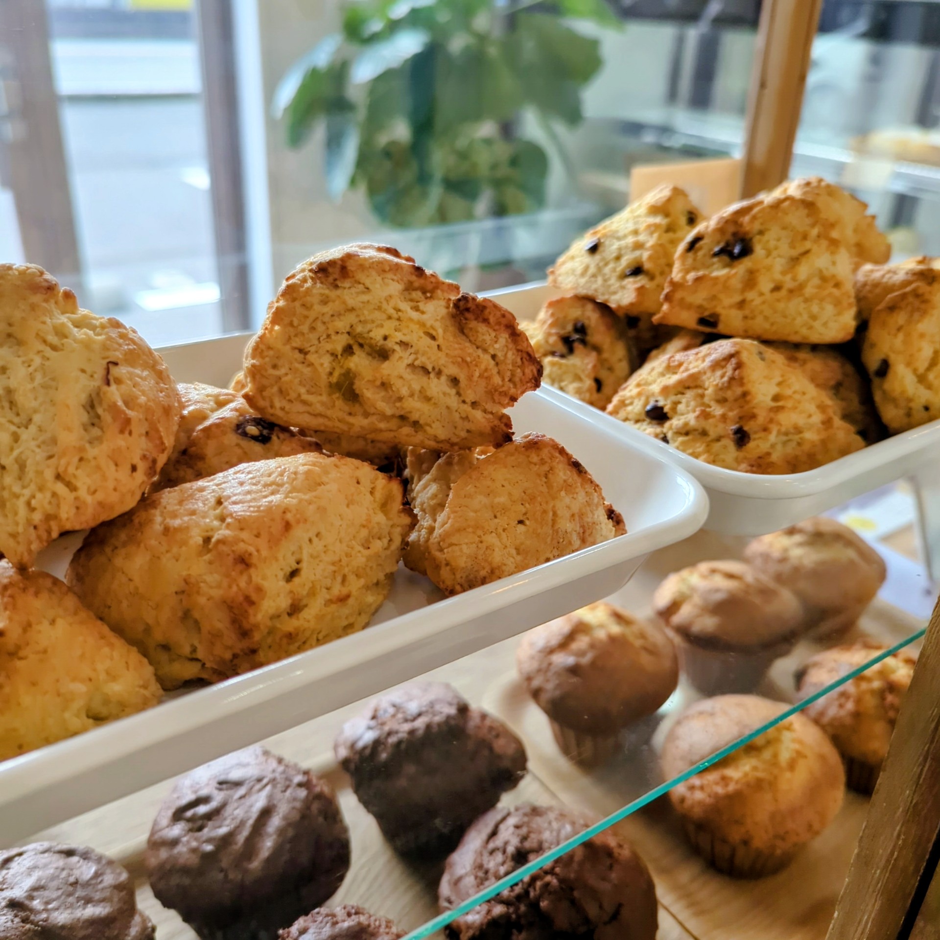 朝市には、焼きたてのスコーンやマフィンをはじめ、米粉のシフォンケーキやクッキー、グラノーラなどをお持ちします。