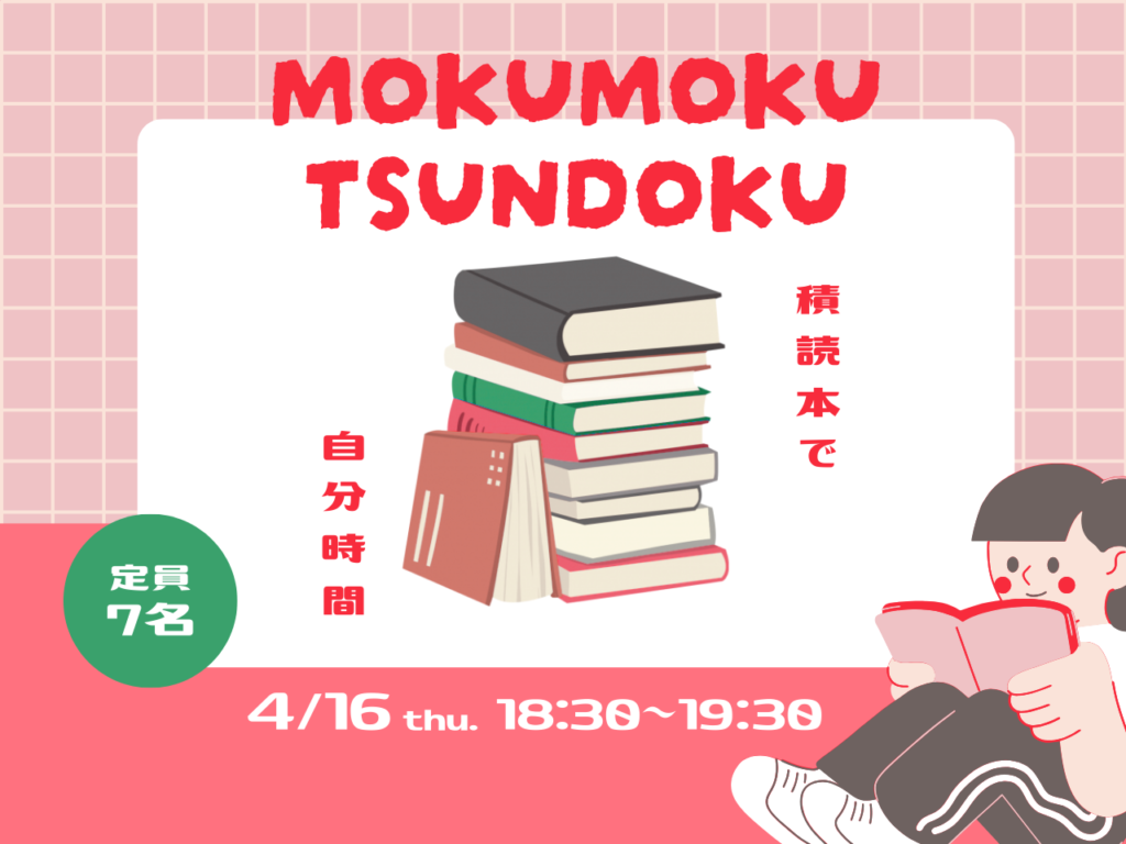 内 容 18:30〜19:30 もくもくタイム(持参した本を静かに読む)