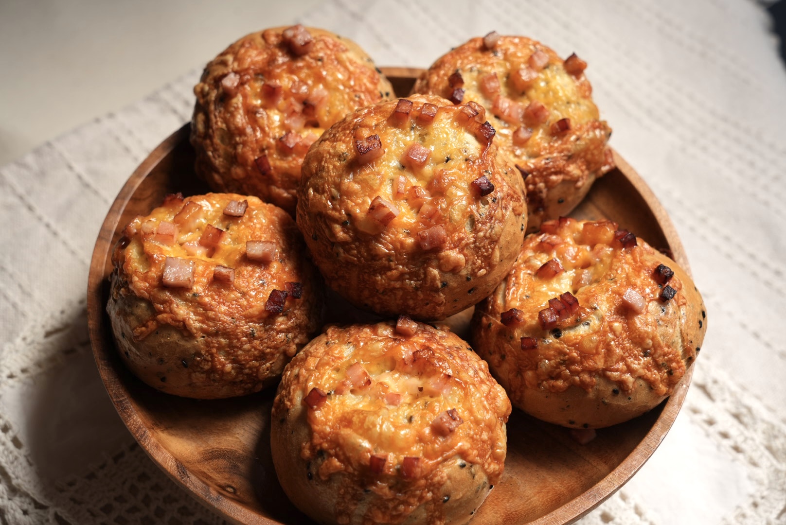 短時間発酵で作れる,ごま×ベーコン×チーズの最強ベーグル。