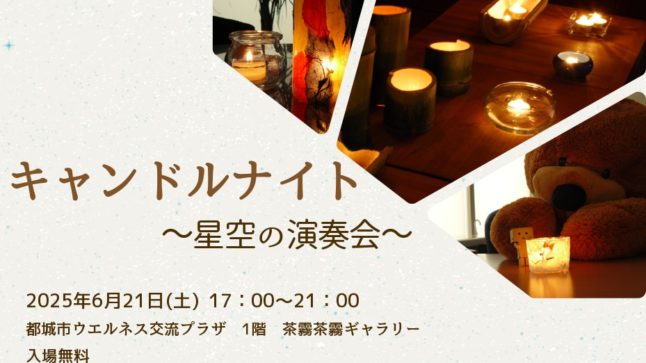 星と音に癒されるひとときを——キャンドルナイト開催 都城市たちばな天文台・蓑部樹生氏と、ハープ奏者・堀之内聡子氏をお招きし、 星のお話とハープの音色に耳を傾けるキャンドルナイトを開催します。 会場には約200個のキャンド … 続きを読む 文化鑑賞事業「キャンドルナイト~星空の演奏会~」