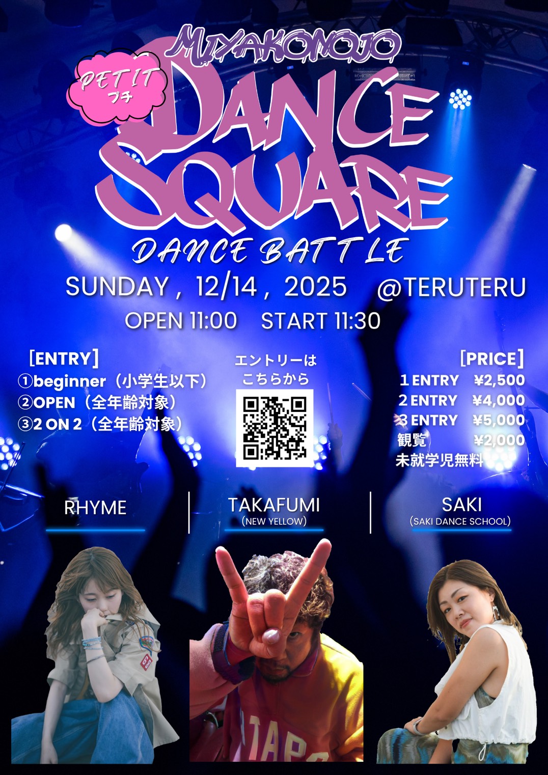 12月14日(日)にテルテルにて、PETIT MIYAKONJYO DANCE SQUARE(ミニバージョンのダンスバトル)を開催します。