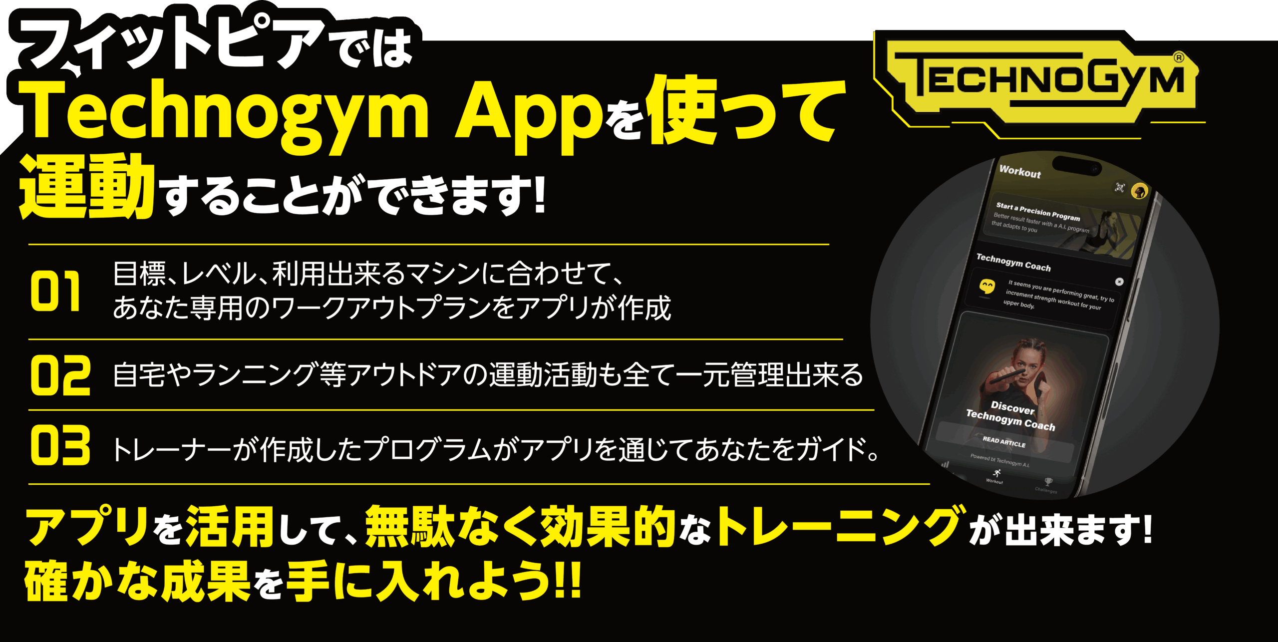 入会金100%OFF・運動管理Technogymバンドプレゼント