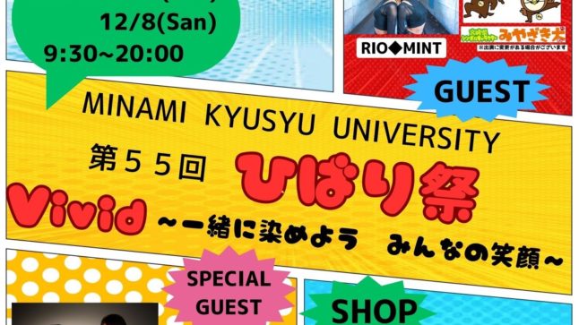 今年で55回目を迎える「ひばり祭」が12月7日(土)と12月8日(日)の2日間に渡って開催されます! 今年のテーマは『Vivid 〜一緒に染めよう みんなの笑顔〜』。 大学生が主体となって、運営する学祭にぜひお越しくださ … 続きを読む 第55回「ひばり祭」