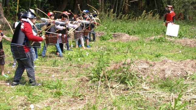 よろい、かぶと(模擬)を身に着けて、身も心も武将になろう!今から640年くらい前につくられたお城「都城」を守る武将を弓矢やつぶて投げ、チャンバラ対決でやっつけよう!武将も使っていたお金作りもするよ!