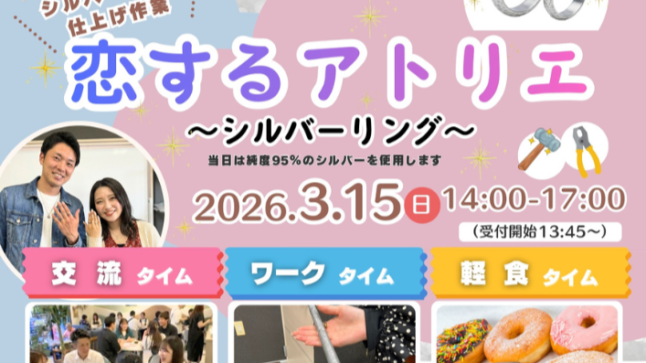 昨年大好評だったシルバーリング作りが、さらにパワーアップして帰ってきました! 今回は金属アレルギーが出にくく、高級感のあるシルバー950という純度95%の上質な素材を使用。 ハンマーなどで叩いて美しい槌目模 … 続きを読む 【2026年3月】恋するアトリエ ~シルバーリング~
