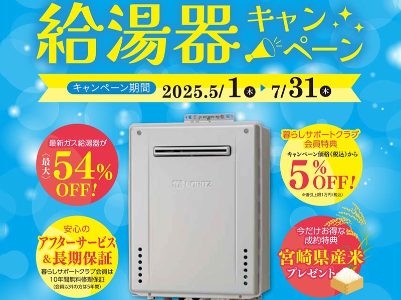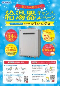 宮崎ガス 暮らしが変わる給湯器キャンペーン【5/1~7/31】 |