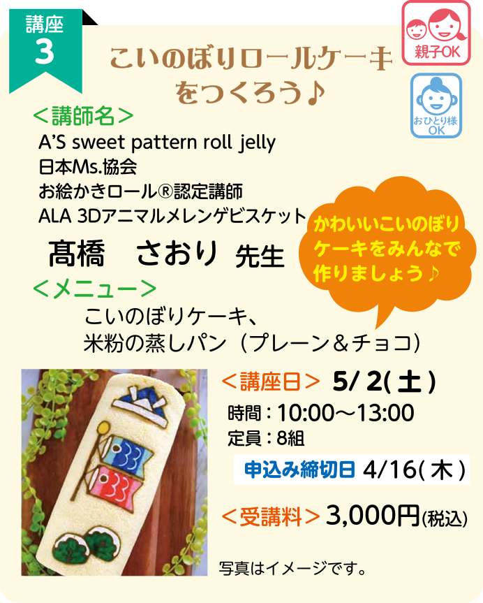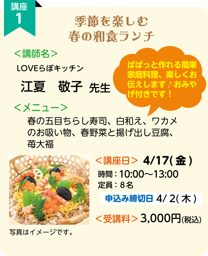 •受講料は講座当日に一括でお支払ください。お支払いただいた受講料は原則として返金いたしません。