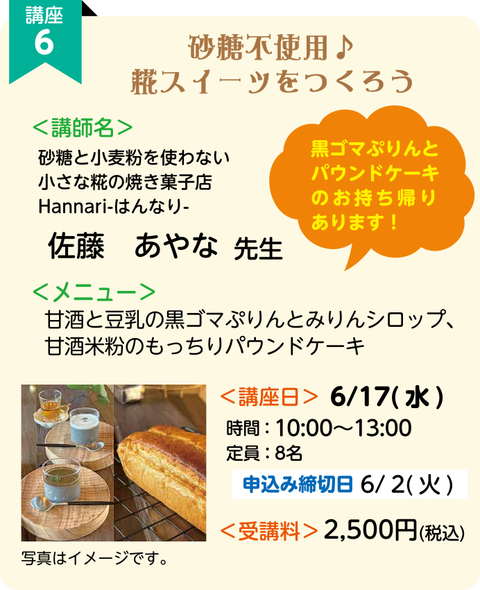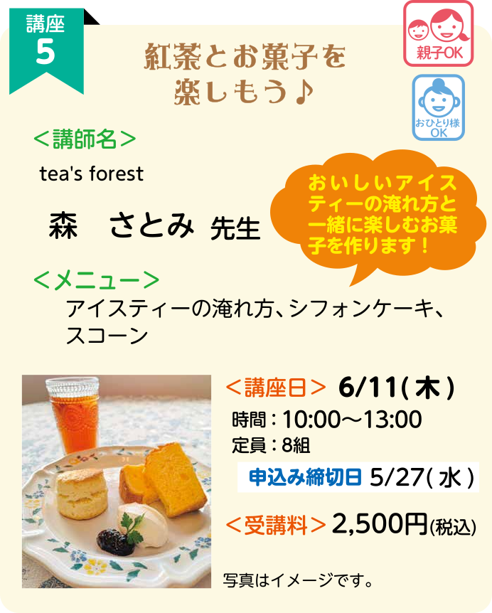 •当日キャンセルは、講座前日の午後5時以降より対象となります。