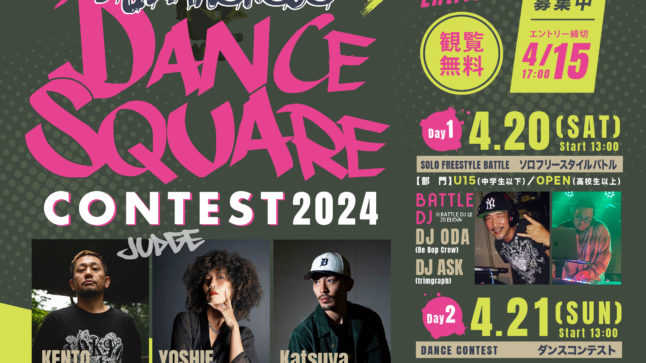 DAY1 4.20(SAT) 13:00~ SOLO FREESTYLE BATTLE (ソロフリースタイルバトル) 部門 U15(中学生以下) OPEN(高校生以上) BATTLE DJ ※BATTLE DJは20日の … 続きを読む MIYAKONOJO DANCE SQUARE