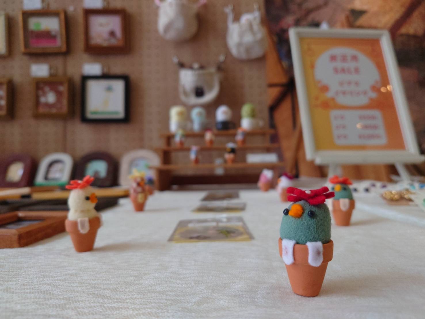商品:コサージュ、アクセサリー、サンキャッチャー、陶器、ブロカント雑貨、多肉植物など