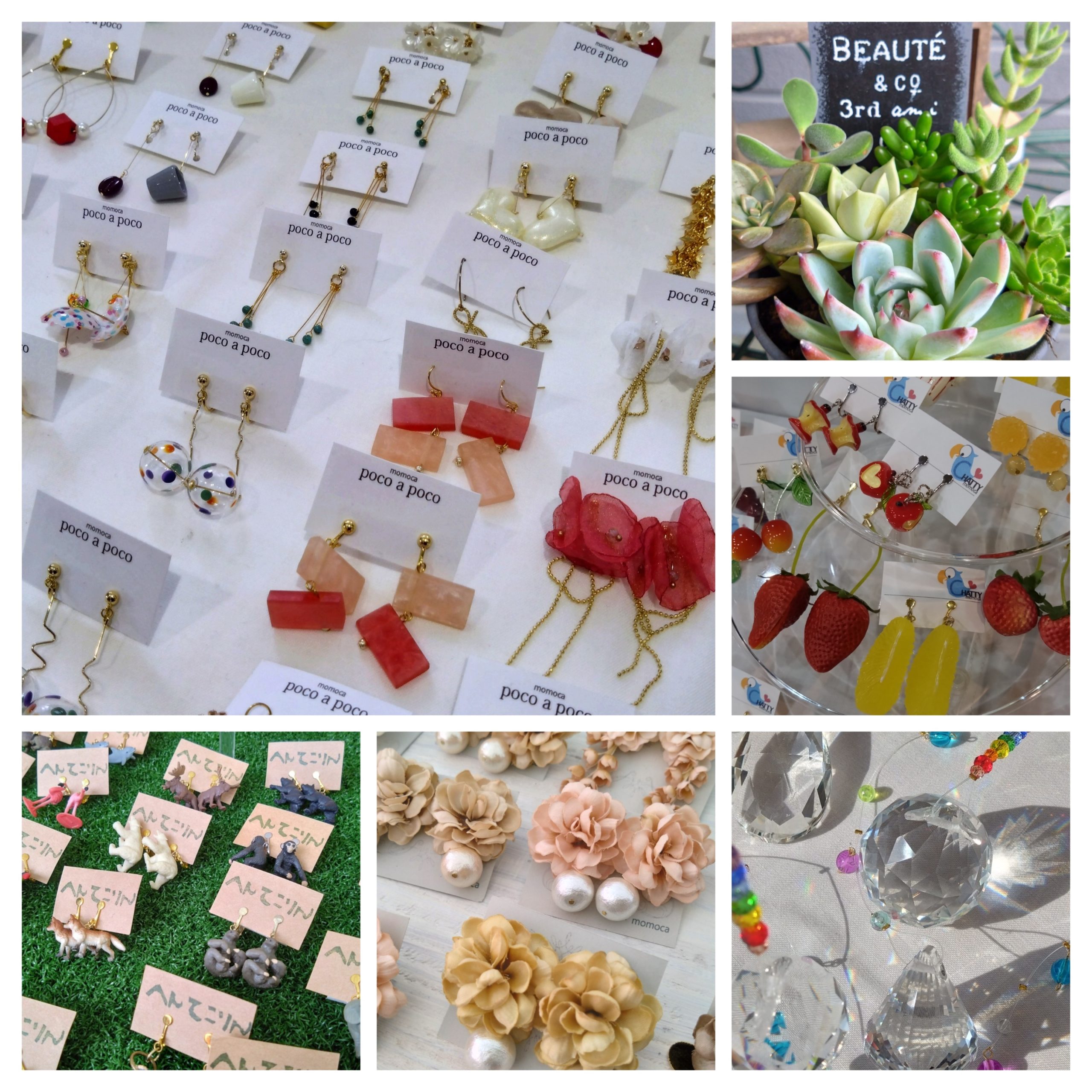 へんてこなアクセサリーやおうち時間が楽しくなるようなサンキャッチャーなどの雑貨、多肉植物を販売します。
