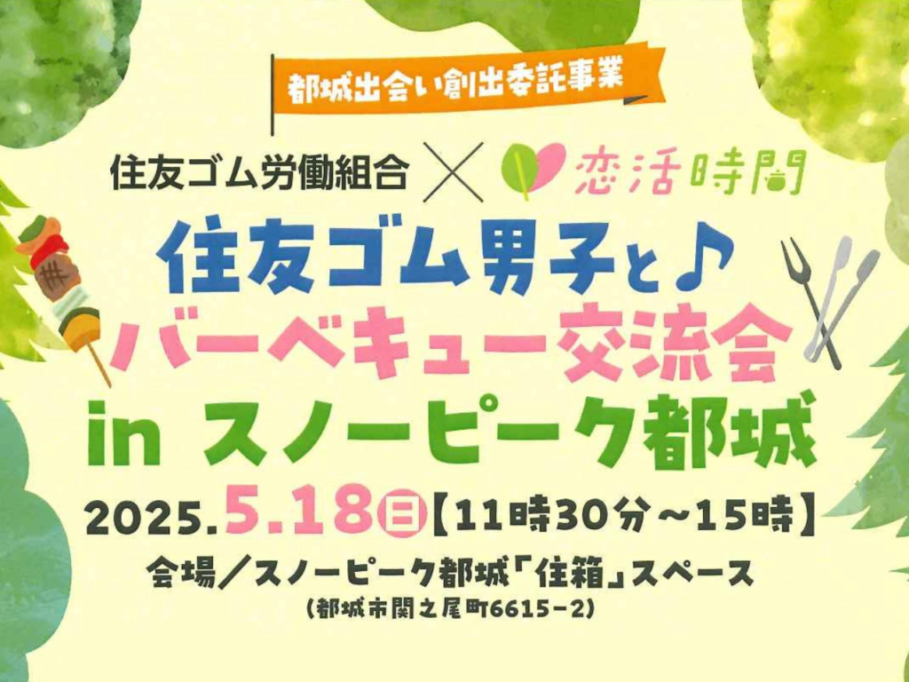 都城出会い創出委託事業 恋活時間 住友ゴム男子と♪バーベキュー交流会inスノーピーク都城 住友ゴム労働組合×恋活時間 |