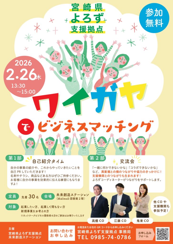 | 問合せ先 | 公益財団法人 宮崎県産業振興機構(宮崎県よろず支援拠点) |