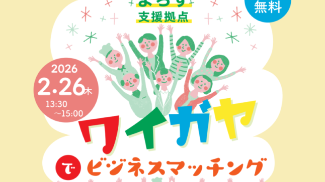 ワイワイガヤガヤで事業を繋げてみませんか。 起業したい方、起業して間もない方、新規事業をお考えの方をバックアップ! 参加者同士での自己PRや交流会を開催します。 お互いに自分の事業PRをして、連携を取れるキッカケにしてみ … 続きを読む 【2026年2月】ワイガヤでビジネスマッチング