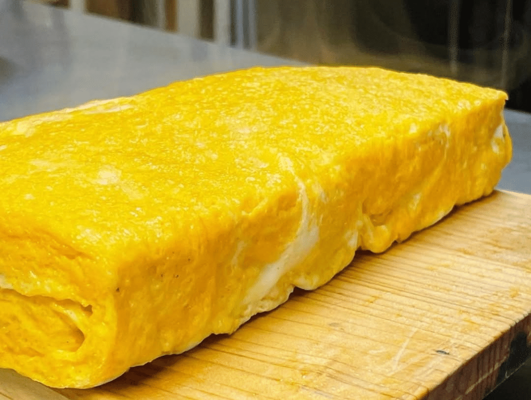 “創業43年よろい寿司の だし巻きたまご”を、からしマヨでサンドイッチにしました。