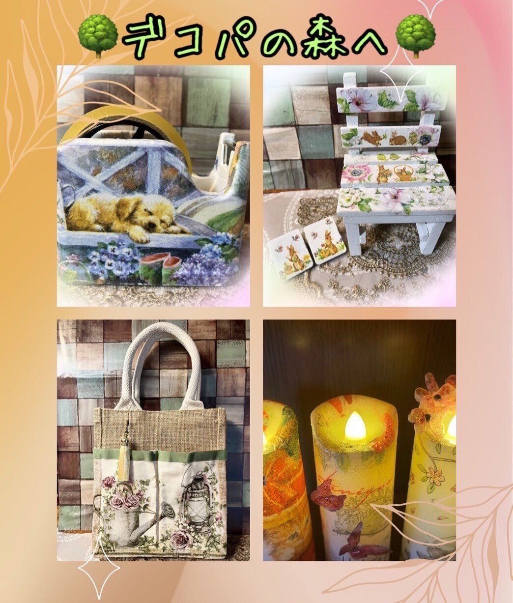 専用糊を使って貼り付ける技法です、このペーパーナプキンは、世界中に3000種類もあると言われ、世界にひとつの作品作りに励んでいます、癒しの柄、元気になるような柄、