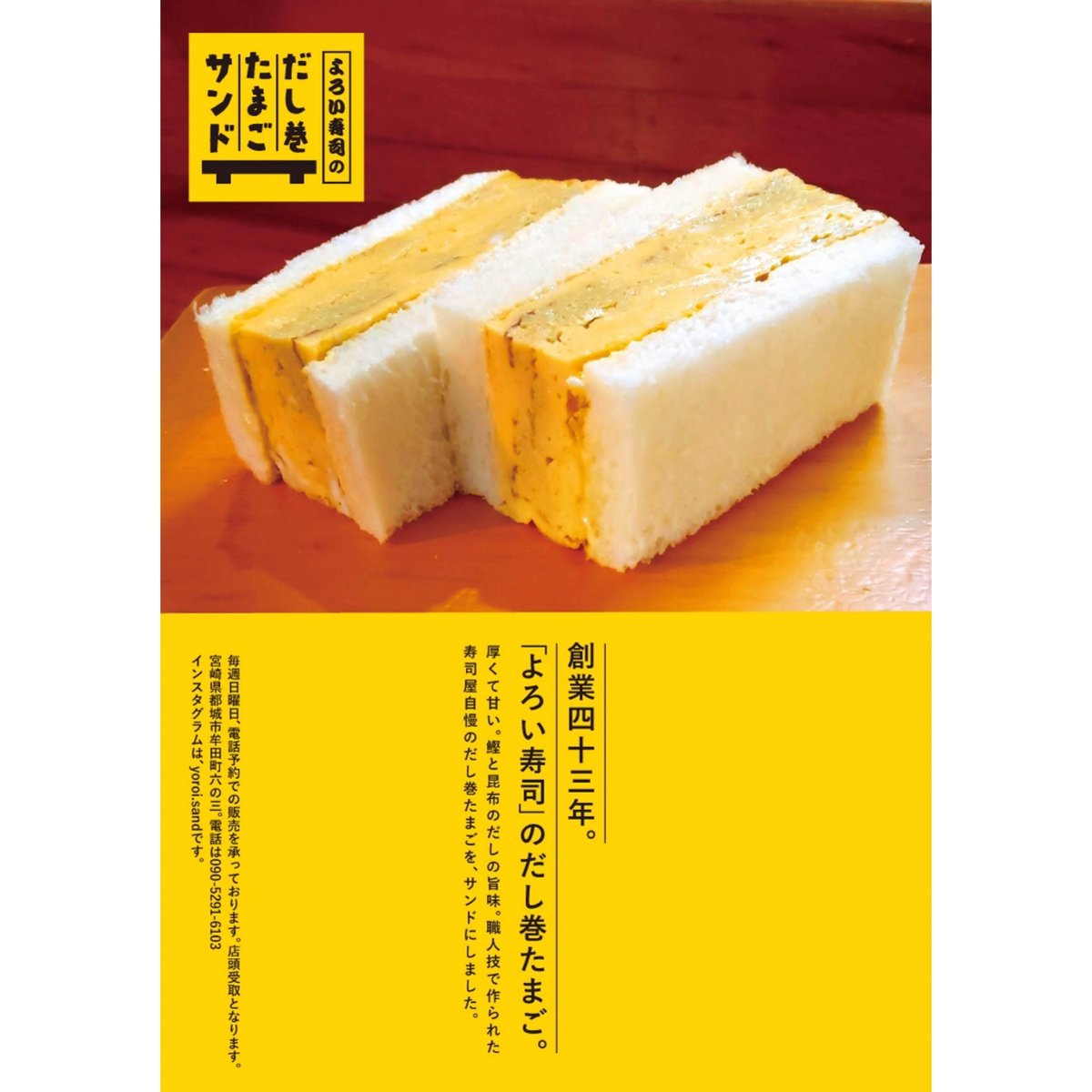“創業43年よろい寿司の だし巻きたまご”を、からしマヨでサンドイッチにしました。