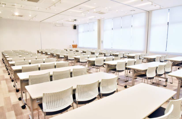 イベントや会議、研修、お遊戯会などさまざまなシーンで利用できる142.2㎡の多目的室は、開放的なカラーガラスのルーム1・ルーム2や遮へい性のあるルーム3を目的に応じて3分割・30分単位で選べ、音響・映像設備やWi-Fi環境を備えて少人数の会合から最大99名のセミナー、お子様のお遊戯会、展示会、各種教室や講座など幅広くご活用いただけます。