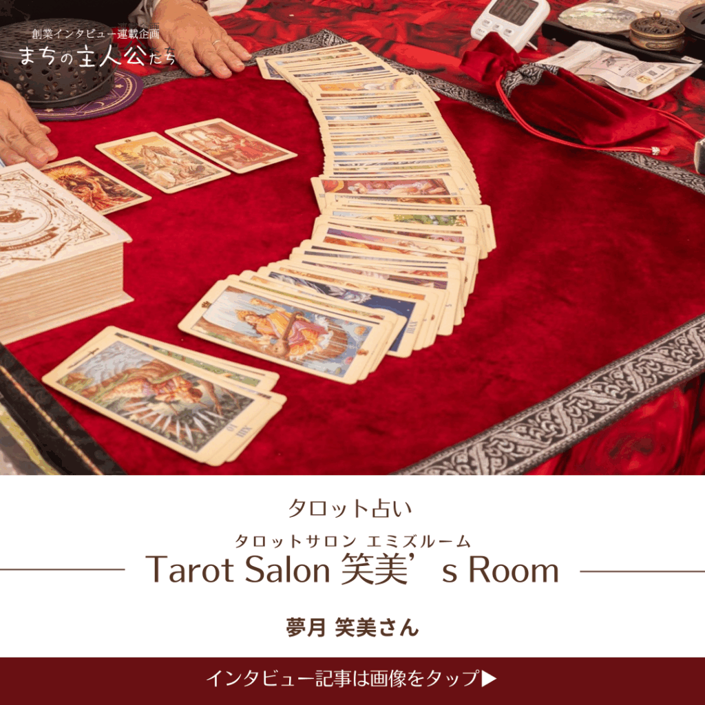 「Tarot Salon 笑美’s Room」夢月 笑美さん都城市にある「Tarot Salon 笑美’s Room」。 ここは、ただ未来を占う場所ではなく、お客様の悩みに寄り添い、共感と気づきを与える場所です。 今回のインタビューでは、事業の概要から創業のきっかけ、そして今後の展望についてお話を伺いました。