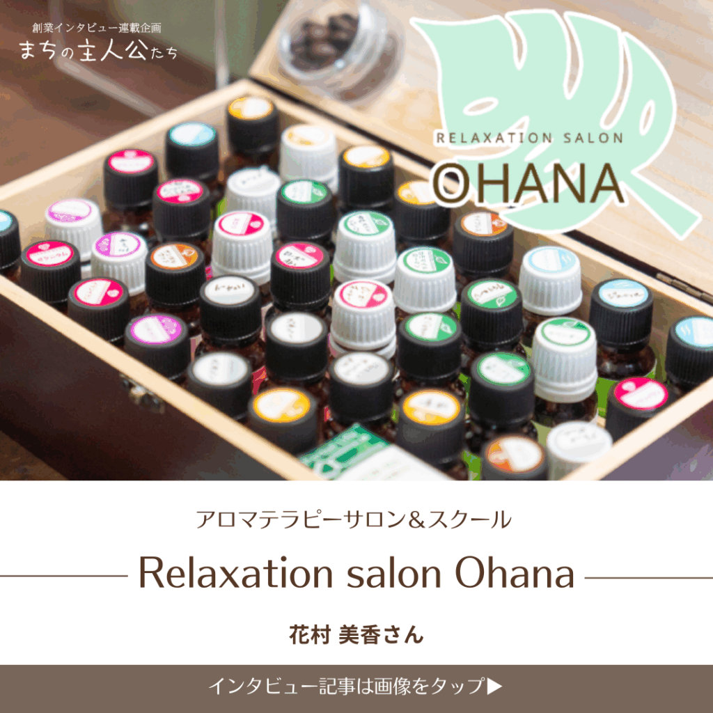 「 Relaxation salon Ohana」花村 美香さんRelaxation salon Ohana代表、AEAJアロマブレンドデザイナーの花村美香さん。 開業から丸2年を迎え、花村さんは「自分の人生を、自分で決めて生きている」という実感を抱きながら大きな挑戦を続けています。 |