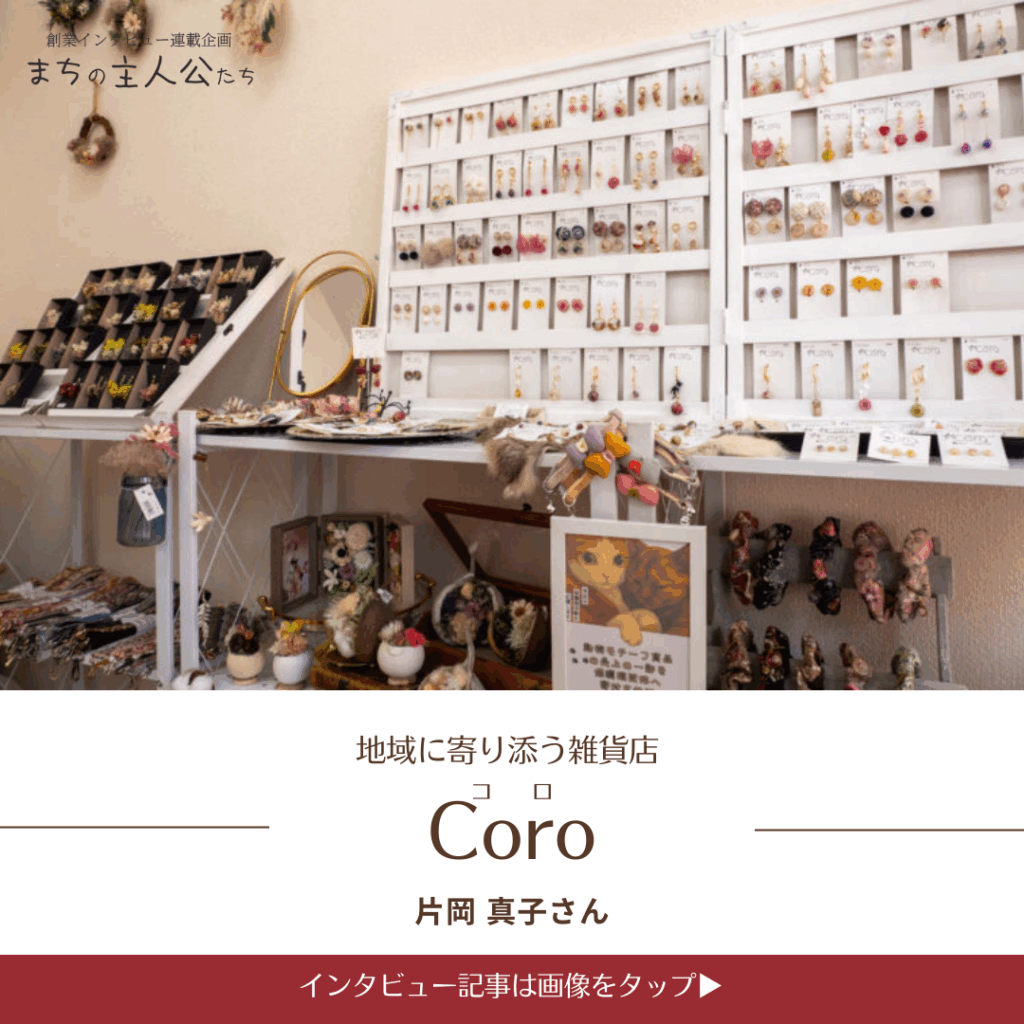 地域に寄り添う雑貨店「Coro(コロ)」片岡 真子さん今年度、都城市オーバルパティオ内のチャレンジショップに出店している雑貨店「Coro(コロ)」。 今回は、創業のきっかけやお店に込めた想い、そして今後の展望についてお話を伺いました。 |