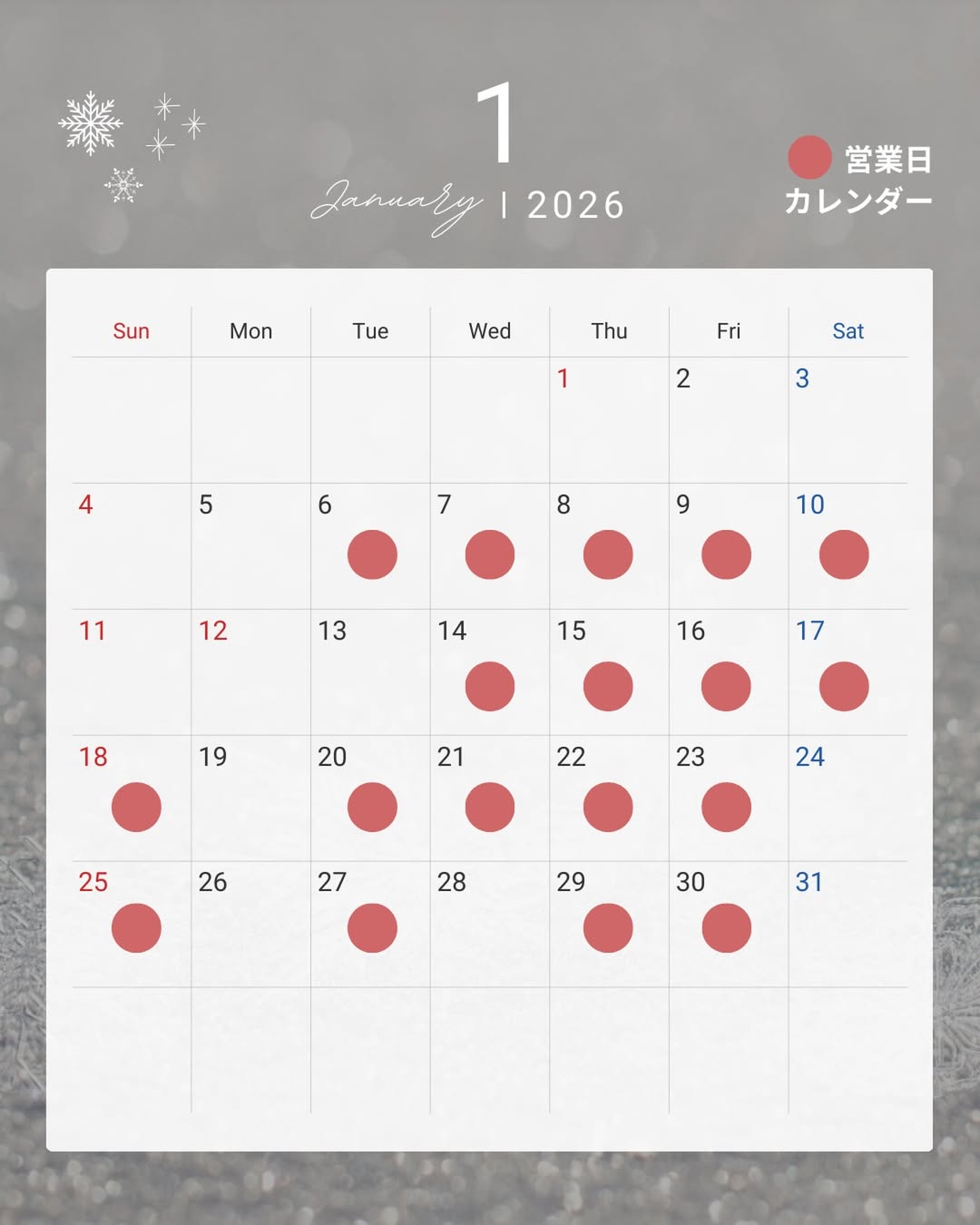 足のお悩みはグナーデへ♪【2026年1月】 フットケアサロングナーデ 1月スケジュール ☏ 090-8228-1032 店舗:宮崎県都城市広原町1-6-4 営業時間10:00-19:00不定休 公式HP:フットケアサロングナーデ マイページ フットケアサロングナーデ